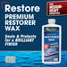 Heavy-duty Premium Restorer Wax is a one-step formula that easily removes medium to heavy chalk & oxidation while leaving a durable, protective coating. No hard rubbing or buffing required. Special UV inhibitors guard against fading, and eliminate the need to use rubbing compound, followed by wax. 32oz