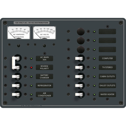 8074 AC Main +8 Positions Toggle Circuit Breaker Panel - White SwitchesFeatures: Red reverse polarity indicating LED All hot, neutral and safety g...