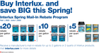 - Mail all items to: Interlux Spring 2023 Mail in Rebate Program (offer 45322) P.O. Box 6068, Douglas, AZ 85655-6068 Customer Service Number: 1-800-293-6778 / Customer Service Web Site: http://www.rewardsbymail.com