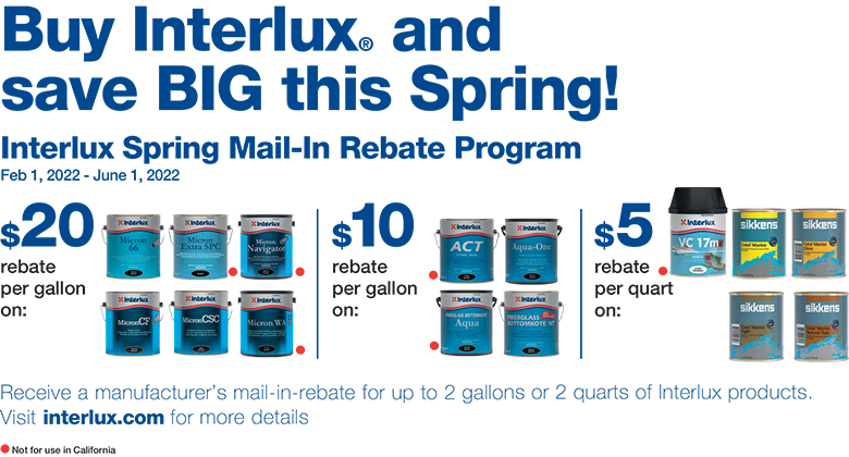 Receive a manufacturer’s mail-in-rebate for up to 2 gallons or 2 quarts of Interlux products.