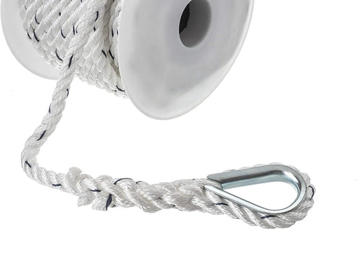 Seachoice 47911 Premium Anchor Rope for Boating - 3-Strand Twisted Nylon Anchor Line, ⅜-Inch x 200 Feet, White/Blue Seachoice Premium 3-Strand Twi...