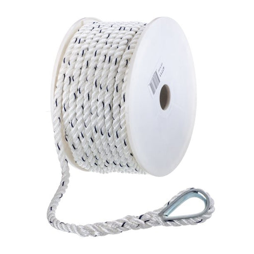 Seachoice Premium 3 Strand Twisted Nylon Dock Line - White With Blue Tracer Extremely strong rope with 10" eye splice (5/8" rope: 18" eye splice). ...