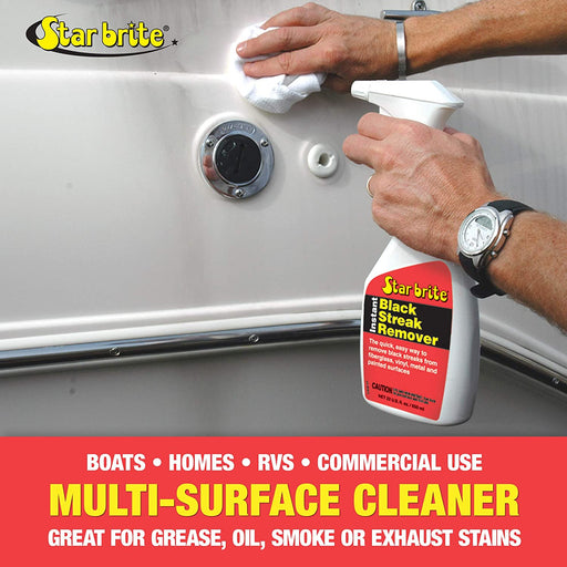 Description Black Streak Remover begins working on contact to eliminate black streaks under rubrails or anywhere else on the boat. In addition ...