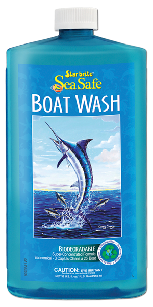Sea Safe Boat Wash is an environmentally-responsible boat cleaning product that really works. The low-sudsing; biodegradable formula is concentrated for maximum cleaning power and maximum economy. It is Lake Safe; so it can be used while the boat is in or near the water. It cleans all marine surfaces; including fiberglass; vinyl; plastic; rubber; glass; metal and painted areas.